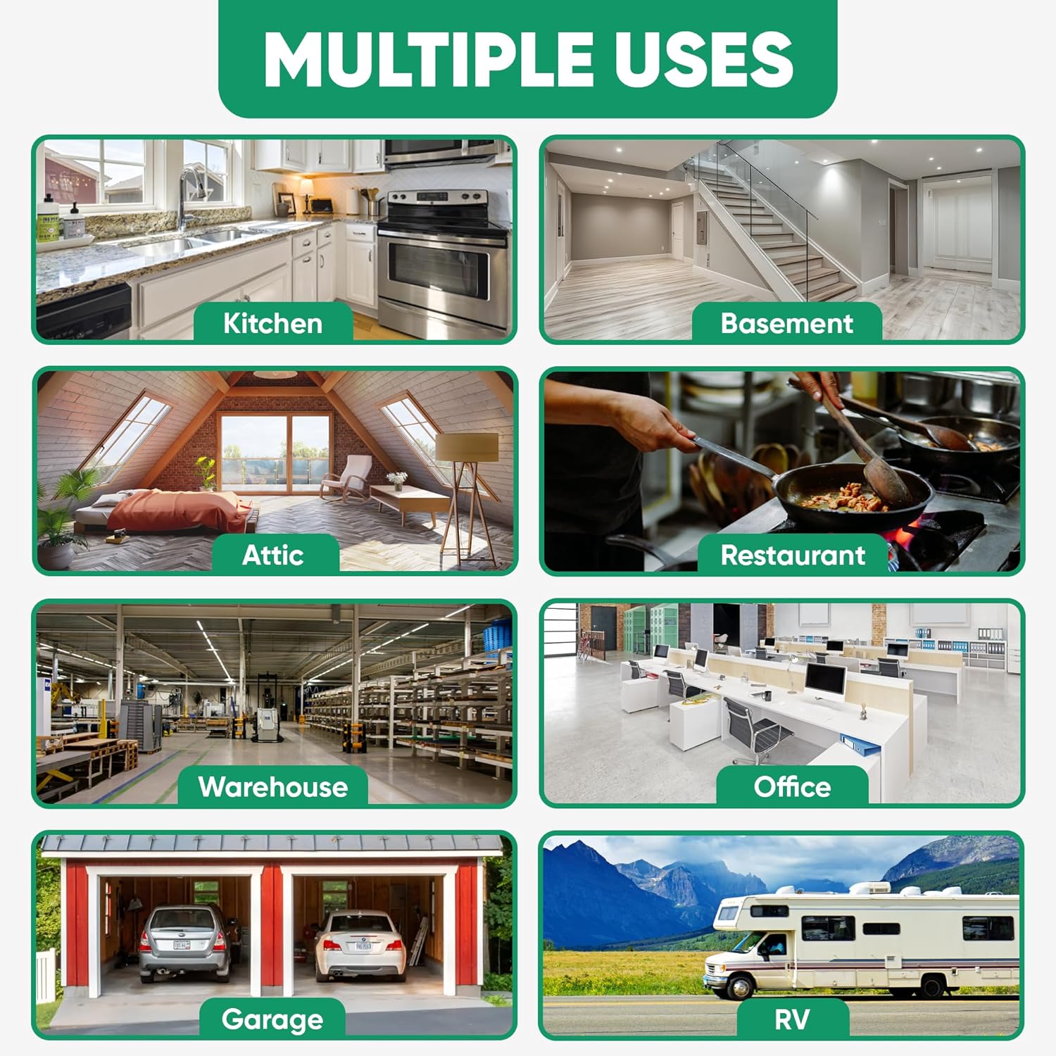 | Ideal Use | Home, kitchen, garage, office, warehouse |